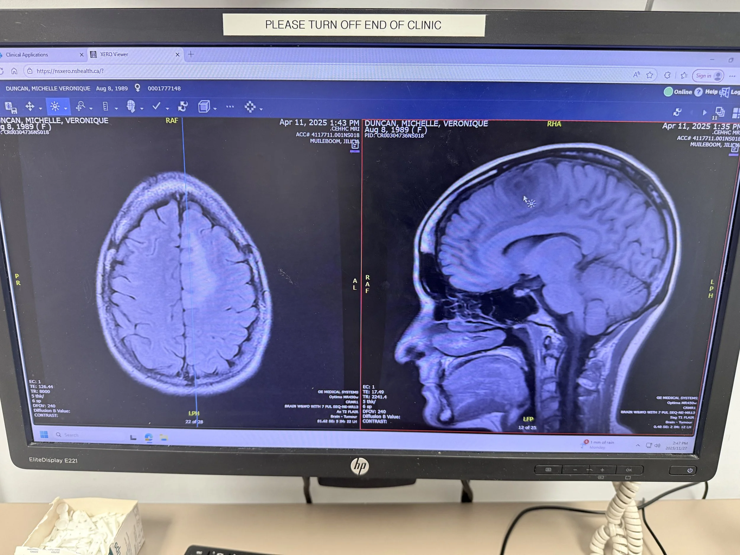 Below are photos of my MRI, shared in the order they were taken.